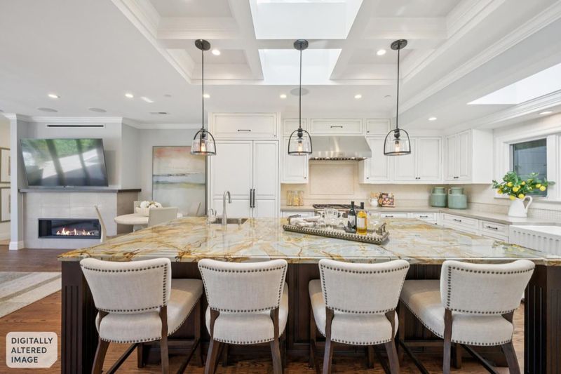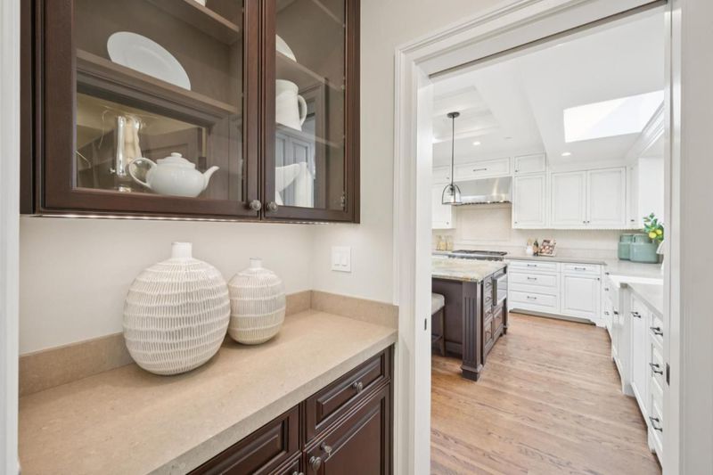 - Cooktop - Gas, Dishwasher, Garbage Disposal, Hood Over Range, Island with Sink, Microwave, Oven Range - Built-In, Pantry, Refrigerator, Skylight, Wine Refrigerator