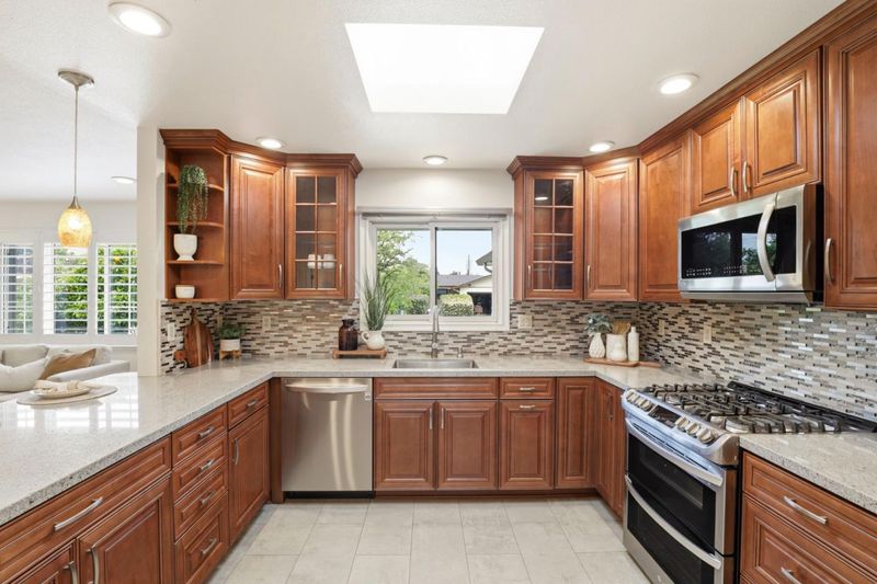 Beautifully updated single-story home in desirable Glenmoor neighborhood. Situated in a private court on a premium cul-de-sac lot, this light-filled residence features an open kitchen & living room layout, hardwood oak flooring through most of the home, detailed window casings, and updated lighting throughout. Spacious kitchen offers skylight, breakfast bar seating, abundant cabinetry with pull-out shelves, large pantry cabinet, double oven gas range, microwave, and ample counter space. Bright living and bonus rooms with custom shutters and blinds overlook lush gardens. A ~295 sq. ft. bonus room not included in official sqft. Private primary suite is located at rear of home featuring ensuite bath, large mirrored closet, and backyard views. Updated baths feature quality finishes including Carrara marble, bamboo vanity, solar tubes, frameless glass, and Hansgrohe fixtures. Additional upgrades include copper plumbing, tankless water heater, newer sewer lateral, recessed lighting, finished 2-car garage with epoxy floors and built-in storage, & automatic exterior lighting. Backyard offers privacy hedges, fruit trees, raised planters, gravel patio area, and multi-zone irrigation system. Conveniently located near top-rated schools, shopping, parks, & major commute routes. Welcome Home!!