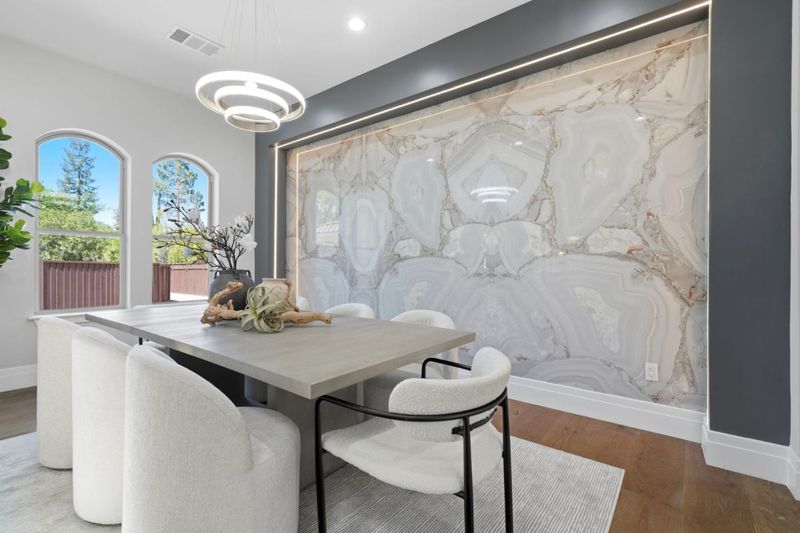 Newly built in 2026, this stunning Los Gatos home blends modern design with everyday comfort. Featuring 5 bedrooms each with its own en suite bath, the home offers approximately 4,467 sq ft of thoughtfully designed living space. A grand entry with soaring 21 ft ceilings, a statement chandelier, and oversized skylight sets the tone, complemented by wide plank flooring and curated designer finishes throughout. The flowing layout includes a formal living room with curved windows, an elegant dining area, and an expansive great room that opens seamlessly to the backyard through floor to ceiling glass doors, perfect for indoor outdoor living. The chefs kitchen is a true centerpiece, showcasing top of the line appliances, ample cabinetry, and an oversized island, complemented by a full secondary butlers kitchen, ideal for entertaining and everyday functionality. Additional highlights include a detached two car garage with two charging points, owned solar, and a light filled interior throughout. Ideally located right around the corner from La Rinconada Country Club and Bay Club Sports and Tennis, and just a short drive to downtown Los Gatos and downtown Campbell, with easy access to major commuting routes.