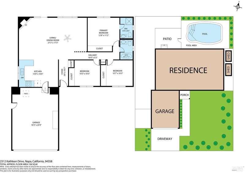 Welcome to 2312 Kathleen Dr. in Napa, a thoughtfully updated single-level home that blends modern comfort with classic Napa Valley charm. Freshly painted inside and out, this inviting residence features new luxury vinyl flooring in a neutral palette designed to complement a wide range of dcor styles. Dual-pane windows, recessed lighting in the main living area, and a sliding glass door opening to the backyard patio create a bright, easy indoor-outdoor flow. The kitchen is both stylish and functional, offering granite countertops, a gas range, overhead microwave, and contemporary cabinetry with pull-out drawers for smart storage. The hall bath feels spa inspired with a jetted soaking tub, tile flooring, and a granite topped vanity, while newer paneled doors throughout add a polished finish. Step outside to your private retreat featuring a pool with spa ideal for relaxing afternoons or entertaining under Napa skies. Energy efficiency and peace of mind come standard with solar plus battery backup, along with newer central heating and air conditioning for year-round comfort. The finished, sheet-rocked garage includes a cleanly painted floor, built-in cabinets, a workbench, and laundry area perfect for projects and organization. Curb appeal shines with charming front fencing, mature rose gardens, and a stately oak tree that enhances privacy and character. Ideally located just minutes from Sutherland Park, top-rated Napa schools, shopping and daily conveniences at Trader Joe's, Whole Foods, and Peet's Coffee, plus quick access to Highway 29 for effortless commuting and exploring all that Napa Valley has to offer. This home checks every box. Move it to the top of your list and make plans to see it today.