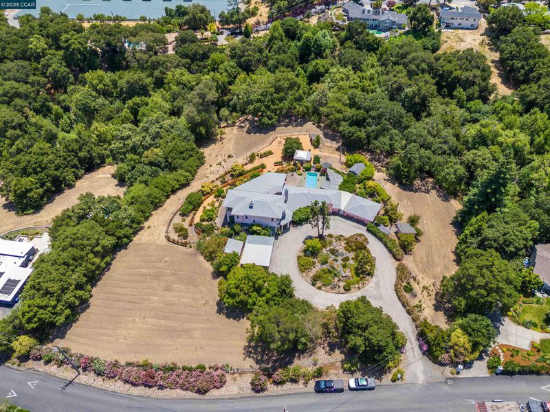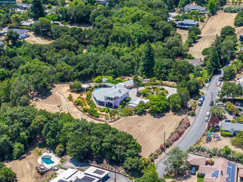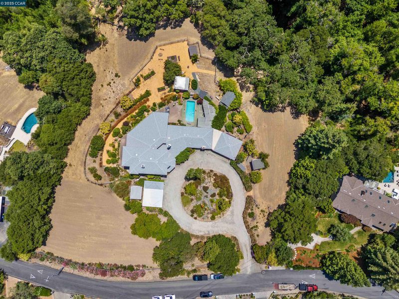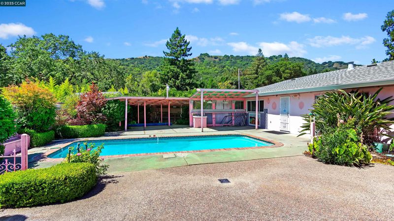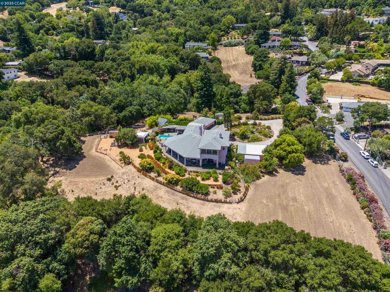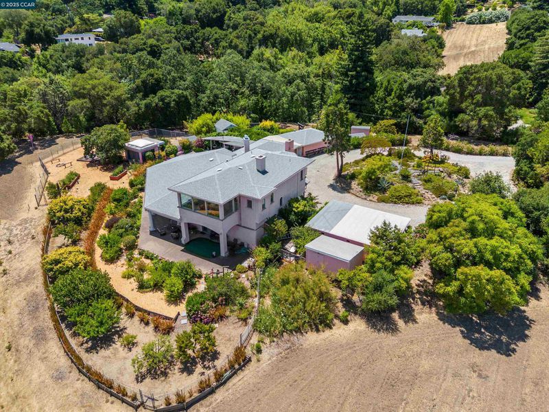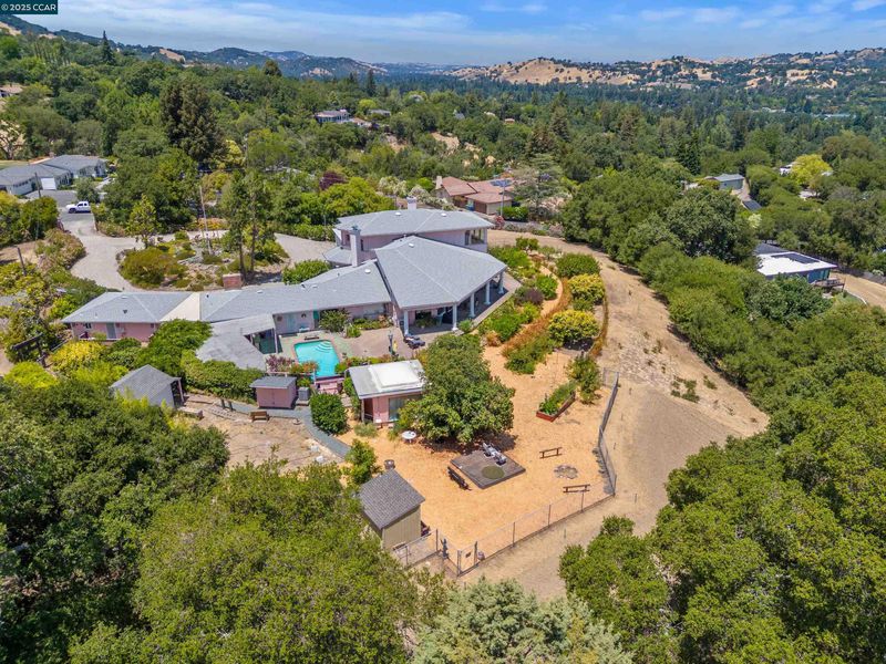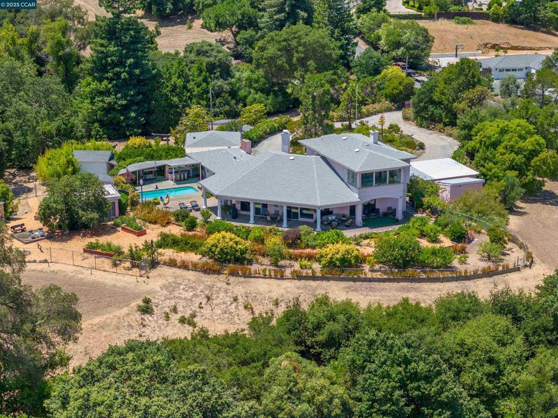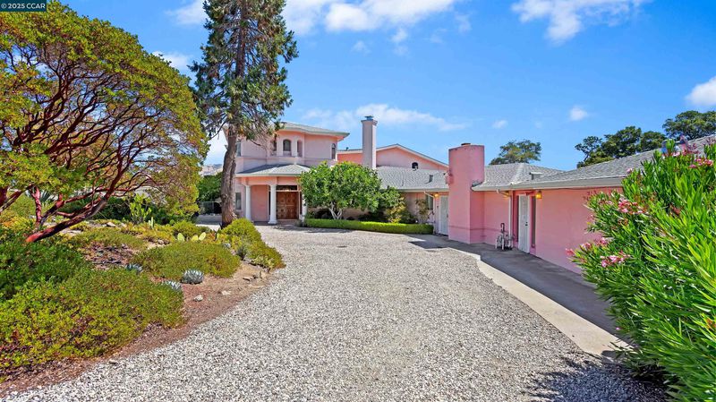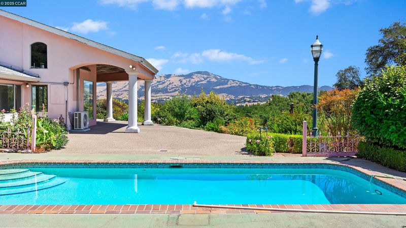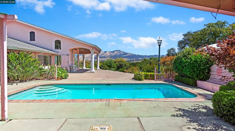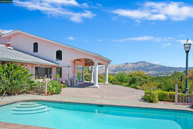 AMAZING NEW PRICE! Extraordinary westside Danville gated custom estate property on the market for the first time in 3 generations offers a wealth of possibilities to create the ultimate dream estate, subdivision, or family compound. Add vineyard, orchard, resort-inspired outdr amenities. 3.66 acres at the base of the Las Trampas Ridgeline was part of original ranch land. Awe-inspiring unobstructed 180-degree views encompass Mt. Diablo and scenic hillsides. 5500+/- SF. Open concept design. Great room. Walls of windows. Soaring exposed beam & 18-ft plank ceilings. White oak & marble tile flrs. Wood-burning frpl. Wet bar. Galley-style kitchen w/granite counters, Miele dual ovens, KitchenAid cooktop. Hand-carved Rosewood double dr entry. Seamless flow from just about every room to wrap-around loggia, pool, lush gardens, mature fruit, shade and oak trees. 5 en suite bdrms, 5 bths inclds private upper-level 1200+/-SF primary suite w/sitting room, view windows on 3 sides, dual walk-in closet rms & en suite w/dual vanities, tiled walls & flr, walk-in shwr. Gated circular driveway. 3-car detached garage. Deer fencing. Upgraded water htr. Upgraded furnace in primary suite. Laundry/mudrm w/frt access. Less than a mile from downtown, weekly farmers market, Iron Horse Trail, top-rated schls.