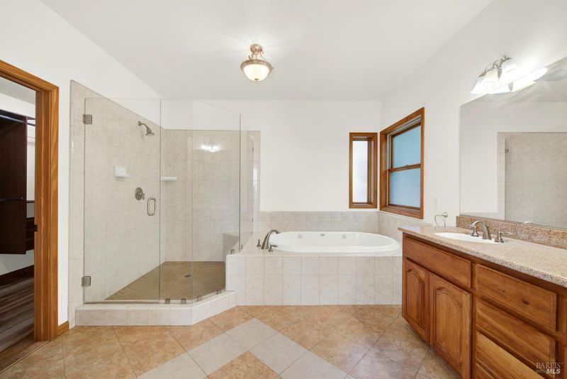 Double Sinks, Jetted Tub, Shower Stall(s), Walk-In Closet