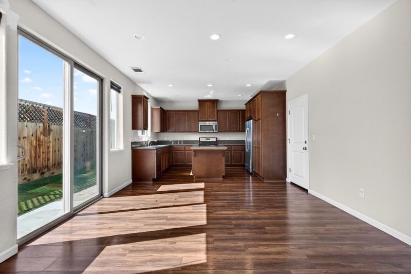 Elegant 4-Bed, 2.5-Bath Home with Gourmet Kitchen and Private Backyard. This fabulous home offers a bright, modern living space with thoughtful upgrades throughout. The gourmet kitchen features granite countertops, a breakfast bar, stainless steel appliances, and recessed lighting, perfect for entertaining and everyday meals. The open family/dining area boasts a high ceiling and a sliding glass door that opens to a well-manicured, landscaped backyard. The inviting primary suite includes a double vanity and a tile stall shower. Practical amenities include indoor laundry and energy-efficient double-pane windows. A two-car attached garage rounds out this impressive home in a prime location close to commute routes, shopping, dining, parks, golf, and schools.