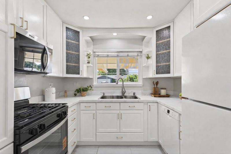 - Cooktop - Gas, Countertop - Quartz, Dishwasher, Microwave, Oven Range, Refrigerator