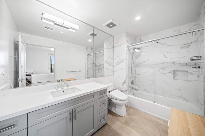 Built in 2018, this like-new contemporary condo is part of an exclusive 20-unit community ideally located in the heart of Korea Town. This bright corner unit is filled with abundant natural light and offers a spacious 2-bedroom, 2-bathroom layout with a private balcony, perfectly positioned on the 3rd floor. The home features soaring ceilings, LED lighting, smart home technology, own laundry room. Designed for modern living, the open-concept floor plan showcases a sleek kitchen with stainless steel appliances, quartz countertops, contemporary cabinetry, and stylish waterproof wood-look flooring throughout. A rare bonus, the unit comes with a 2-car carport, and it is the only carport in the entire complex equipped with its own EV charger port, making it an exceptional convenience for todays lifestyle-focused buyer.