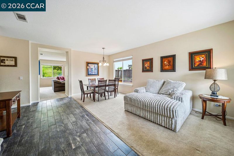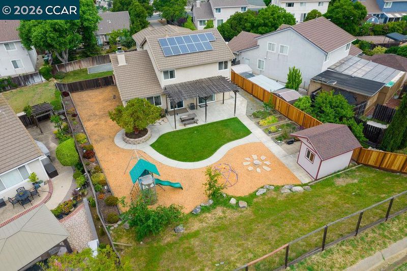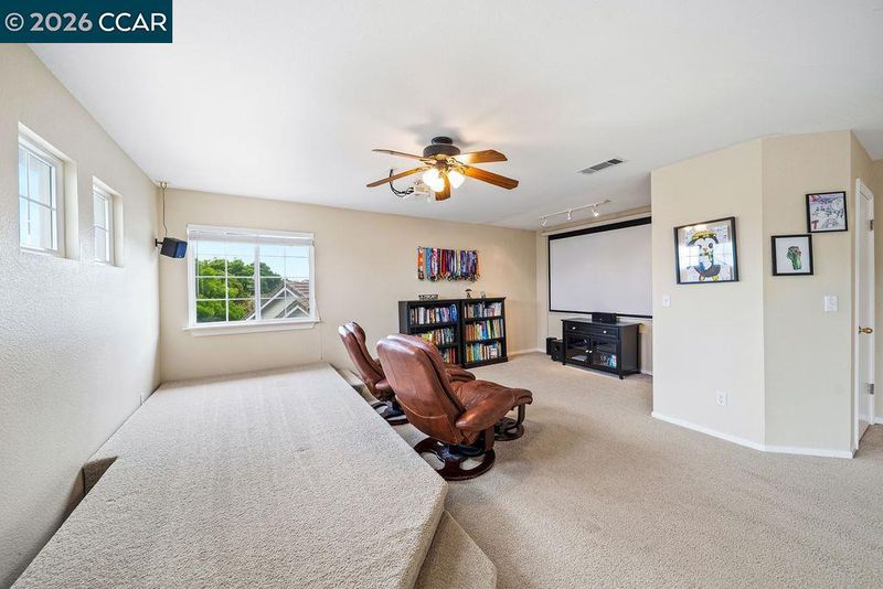 Welcome to 1065 Dawnview Ct in Pittsburg. This home offers a versatile and spacious layout with thoughtful updates throughout, including beautifully updated bathrooms that bring a fresh, modern touch to the interior. Enjoy added privacy with no rear neighbors and scenic views of the surrounding hills, creating a peaceful backdrop for everyday living. Situated on a generously sized lot, the backyard features a garden area, designated play space, and a covered patio—ideal for relaxing or entertaining outdoors. Inside, the flexible floor plan includes a sixth bedroom option currently configured as an expansive bonus room, complete with a theater system—perfect for movie nights, a game room, or multi-purpose living. Additional highlights include owned solar, helping to enhance energy efficiency and long-term savings. This property combines comfort, functionality, and outdoor enjoyment in a desirable location.