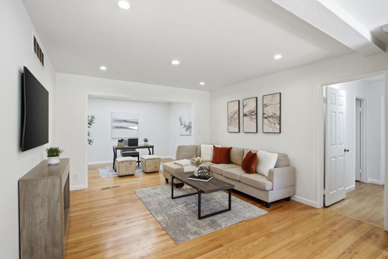 This is a rare Silicon Valley find that checks every box for the serious buyer. Bathed in natural light, this 4-bedroom 2 full bath home on a 6400 sq feet lot, features soaring vaulted ceilings, rich hardwood floors, and an almost new chef's kitchen with gas cooktop, that anchors the open concept living. This gorgeous house has a beautiful courtyard draped in flowering vines, mature fruit trees, perfect for those who value seamless indoor outdoor living. Enjoy a"Goldilocks" commute to Netflix, Nvidia, Apple, and Cisco, all while being walking distance to neighborhood Parks and top-tier schools, including Harker and Westmont High. Future-proof your investment. Take advantage of the generous Zoning that allows extension or building an ADU and a JADU. The property is within the Moreland Elementary School District.