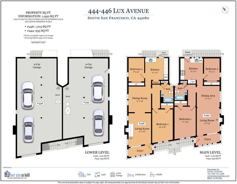 THIS IS A DUPLEX. EACH UNIT IS A TWO bedroom One bath. Outstanding freshly updated duplex in the sought-after Sign Hill neighborhood. All new paint inside and out enhances the bright, welcoming feel. 444 Lux has San Francisco Bay views and laminate wood floors while 446 Lux features new carpet. Each unit has an enclosed sun room at the entrance, a living room with fireplace, dining room, kitchen with access to the rear yard, 2 bedrooms, and a bath with tub and overhead shower. Below each unit is an oversized tandem 2-car garage with laundry area. Extra-large level outdoor living areas offer wonderful added space for each unit. Great location just blocks to downtown shops, cafés, and Spruce Elementary, less than a half mile to the Sign Hill Park trailhead, plus minutes to biotech centers, BART, and freeway access to San Francisco or Silicon Valley.