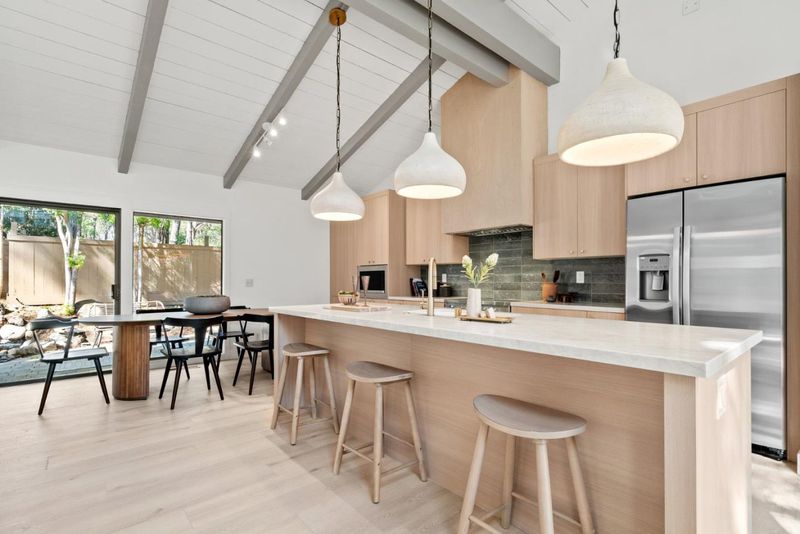 Exquisite, single-level 3 bedroom 2.5 bath Pebble Beach home in a culdesac with abundant natural light and views to nature! This bright and airy residence has been newly updated featuring an open floorplan enhanced by vaulted ceilings, large windows, and a slider leading to a paver patio which invites the outdoors in! This gem showcases a world class chef's kitchen: contemporary cabinetry combines clean lines with natural wood texture, Taj Mahal quartz counters, elegant brass, moss ceramic tile, built in micro, 36 inch stove with custom wood fan hood, HUGE center island with sink and bar area to entertain. Corfu cream ceramic pendant lights complete this modern space! 3 very large bedrooms! 2 of the bedrooms feature their own fireplaces, and ensuite bathrooms that have been updated with new dual vanities, mirrors, flooring, light and plumbing fixtures. The third bedroom is staged as an office with it's own slider to the rear yard. Enclosed rear yard with new fencing! Adjacent to Morse forest and trails. A detached two-car garage. Multiple outdoor patio and gardening areas! This retreat's tranquil setting is just minutes from world-renowned Pebble Beach golf, upscale dining, boutique shopping, the beach and all the coastal charm of the Monterey Bay!