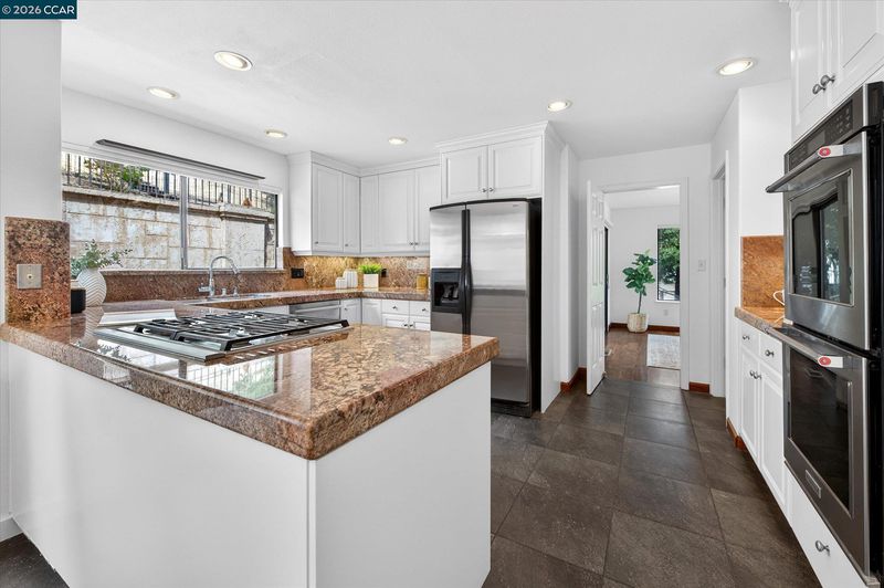 - Dishwasher, Double Oven, Gas Range, Refrigerator, Self Cleaning Oven, Breakfast Nook, Stone Counters, Eat-in Kitchen, Disposal, Gas Range/Cooktop, Self-Cleaning Oven