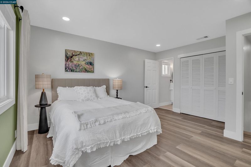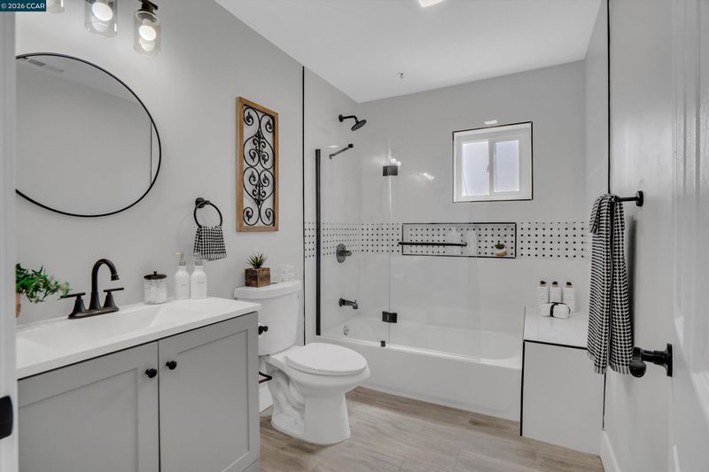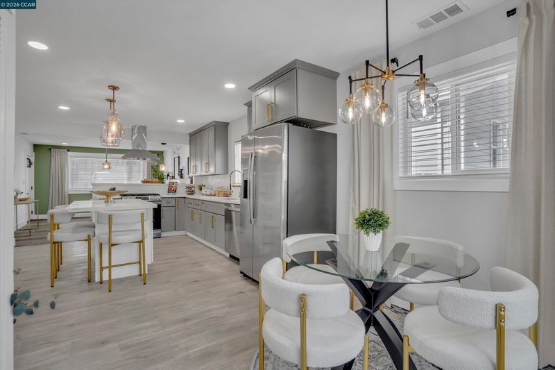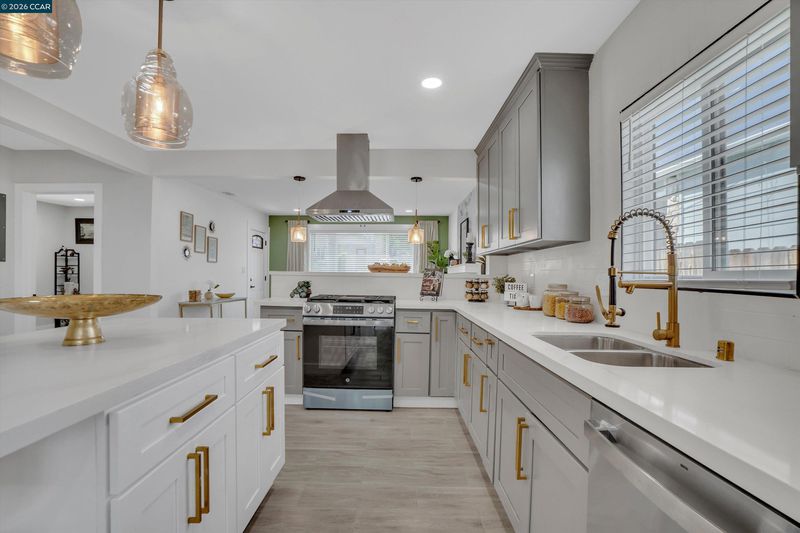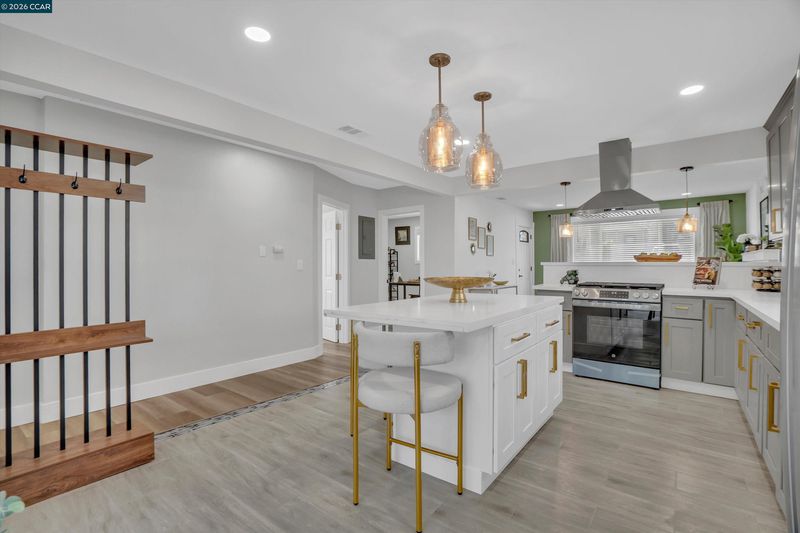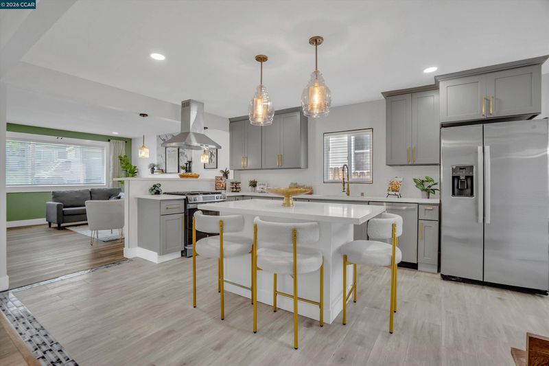 Welcome to this beautifully reimagined four-bedroom, two-bath tri-level home in the heart of Martinez, where modern upgrades meet timeless comfort and style. Completely redone from top to bottom, the stunning kitchen is a true centerpiece, featuring new cabinetry, quartz countertops, tile flooring, designer lighting, a spacious island, breakfast bar, and brand-new stainless steel appliances—perfect for both everyday living and entertaining. This elegant residence offers a warm and inviting atmosphere with laminate flooring, an electric fireplace, designer paint accent walls, recessed lighting, and new window blinds throughout. The private primary suite offers a serene retreat with a beautifully updated en-suite bathroom, while the hall bath is equally refined with a new vanity, tile shower, and custom enclosure. Enjoy peace of mind with major improvements including a new HVAC system and newly poured concrete driveway, walkways, garage floor, and back patio. Outdoor spaces shine with a deck, patio, front lawn, planter boxes, and automated irrigation. Located near vibrant downtown shops, restaurants, Marina Park, and top-rated schools, this home truly has it all.