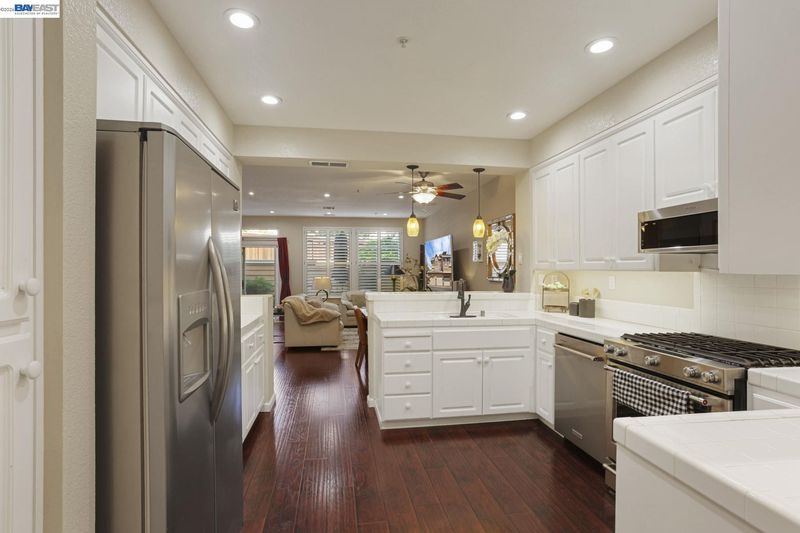 - Dishwasher, Gas Range, Plumbed For Ice Maker, Microwave, Oven, Refrigerator, Self Cleaning Oven, Tile Counters, Disposal, Gas Range/Cooktop, Ice Maker Hookup, Oven Built-in, Pantry, Self-Cleaning Oven