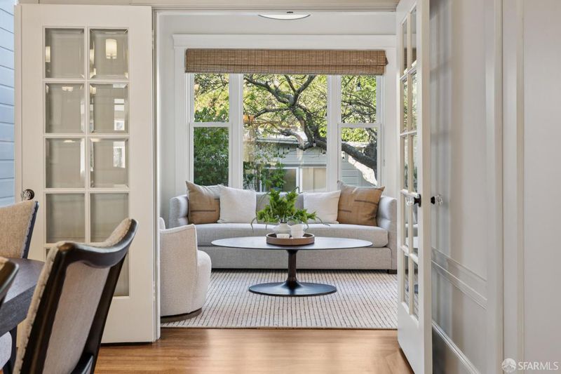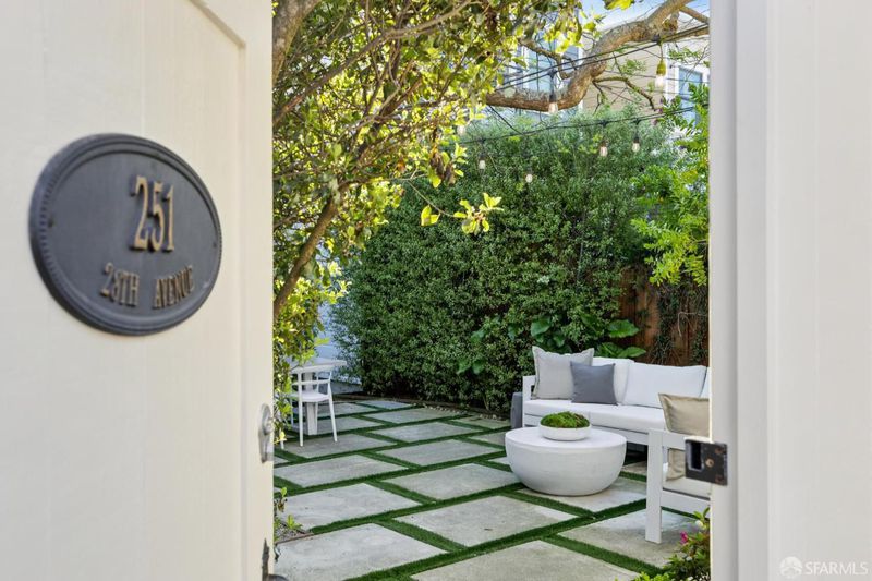 Situated on a tranquil residential block in Sea Cliff, 251 28th Avenue is a meticulously updated residence from 1916 that elegantly marries the charm of classic San Francisco architecture with the conveniences of modern living. Rich period craftsmanship, including crown moldings and refined millwork, enhances the gracious, light-filled rooms, which are designed for both everyday comfort and memorable gatherings. The main level seamlessly transitions to a reimagined garden, creating a rare indoor-outdoor living experience that is ideal for dining, lounging and lazy afternoons. Thoughtfully landscaped, the garden serves as a natural extension of the home. On the upper level, three serene bedrooms provide peaceful retreats, including a primary suite that features peekaboo views of the Golden Gate Bridge and an updated ensuite bath. The versatile lower level offers adaptable space for media, work, or recreation space. Additionally, the home includes a detached garage, perfectly suited for use as a home office, creative space, or fitness studio. Located just moments from Lincoln Park, Baker Beach, Lands' End, and the Presidio, this residence enjoys close proximity to some of San Francisco's most stunning coastal landscapes.