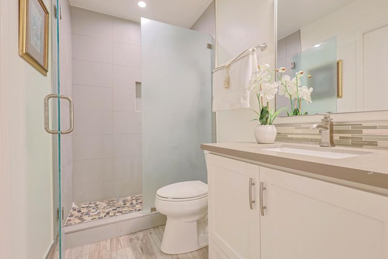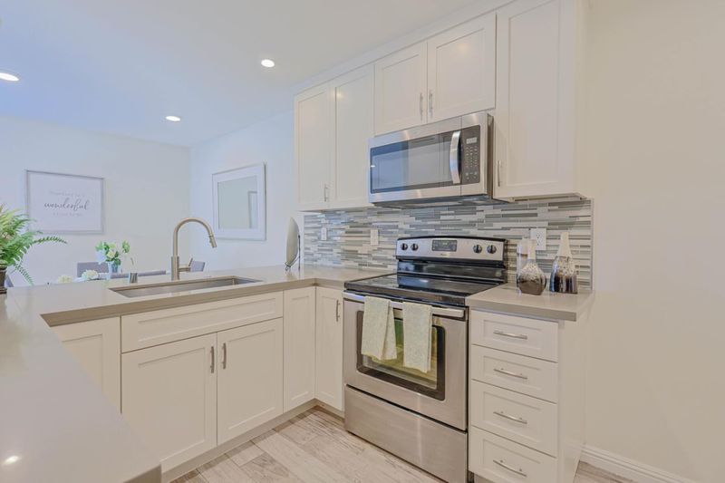 Beautiful remodeled single story end unit. Enter through the gate to a private patio/courtyard where you can enjoy outdoor living on the pavered patio. Enter into the living room accented by sliding doors to the front patio plus a dining L. The efficient kitchen has been remodeled withbeautiful white cabinets, Quart counters, glass backsplash, oversized stainless sink, corner cabinets fitted with lazy susans, pantry with pull-out shelves and beautiful tile floor with the look of hardwood. An inside stacking washer and dryer are conveniently located in the kitchen. The bathroom has been remodeled featuring a custom shower with a frosted glass door & pebble-style tile floor. The master bedroom has mirrored doors on the closet as well as built in books shelves. Attic space for extra storage is accessed with a pull-down staircase. Within the past 2 years, a new water heater was installed, a new furnace and the addition of central air conditioning. Come and see!