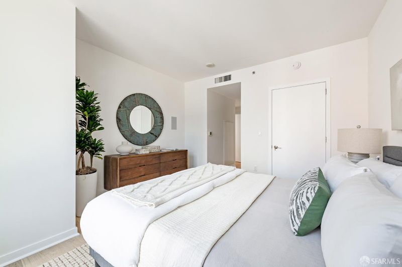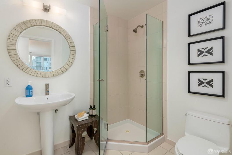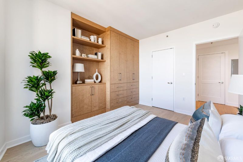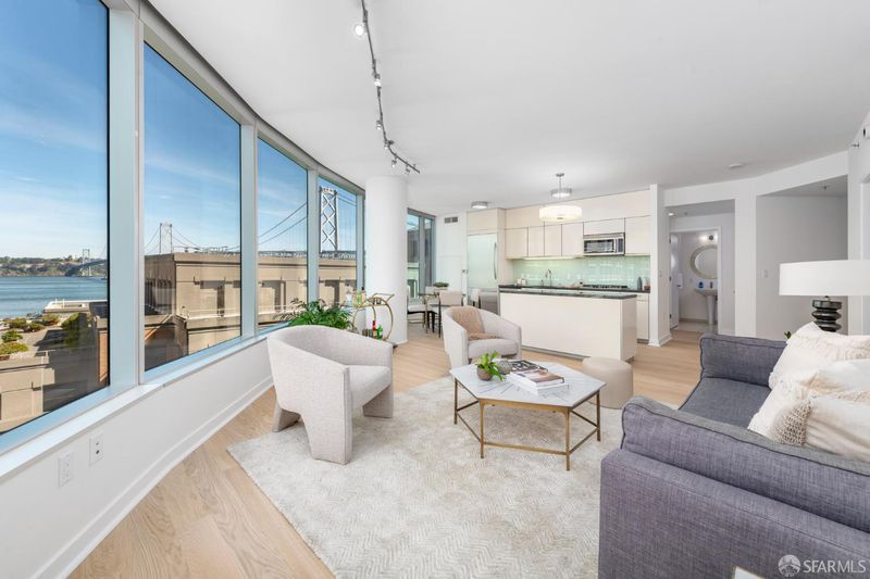 Welcome to Residence 14B at Infinity - a spacious corner 2 bedroom/2 bathroom residence in one of San Francisco's most sought-after luxury highrises. This northeast-facing home showcases iconic Bay Bridge and water views, filling the space with natural light throughout the day. Featuring brand new Boen white oak hardwood flooring throughout, 14B has an open-concept living/dining area and a private balcony, perfect for taking in the city lights and shimmering bay. A contemporary kitchen features Bosch and Thermador appliances, sleek Studio Becker cabinetry, and premium finishes ideal for cooking and entertaining. The primary suite offers generous proportions, a walk-in closet, and an ensuite bath with dual sinks, a soaking tub, and a separate shower. The second bedroom is equally well-appointed with customized built-ins - ideal for guests or a home office. Residents of The Infinity enjoy world-class amenities: 24/7 lobby attendant service, state-of-the-art ~5000 sf fitness center, indoor lap pool, club lounge, theater room, business center, several conference rooms, and deeded self-parking. Located just steps from the Embarcadero waterfront, world-class dining, transit, and the best of South Beach living, Residence 14B offers an exceptional blend of luxury, comfort, and urban convenience. Make this home yours - just in time for the return of the Bay Lights and have your very own front row view!