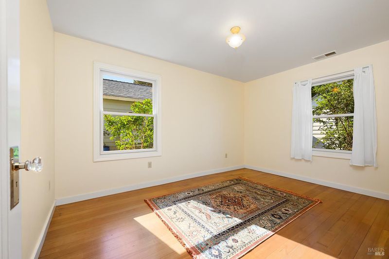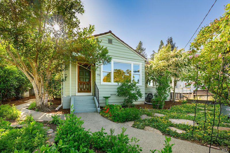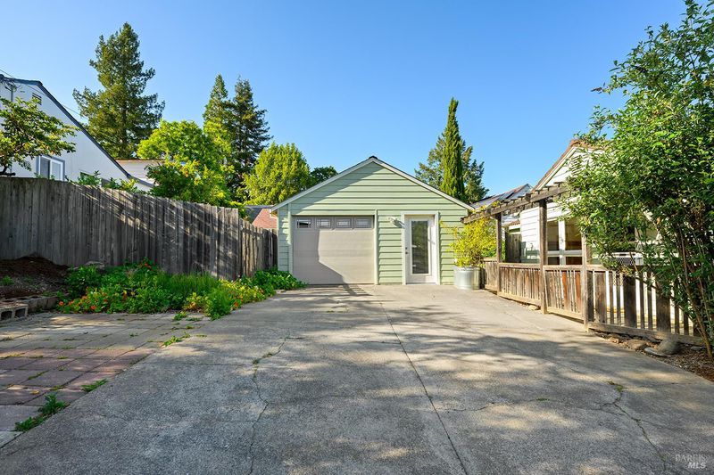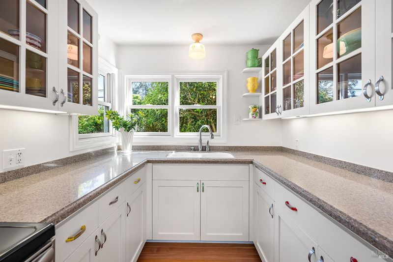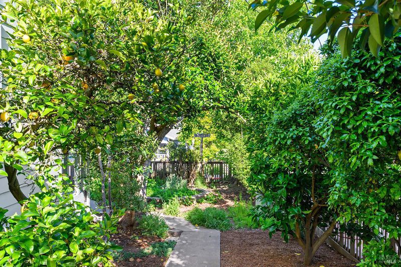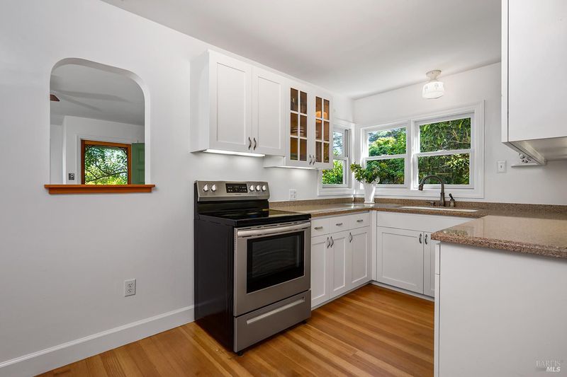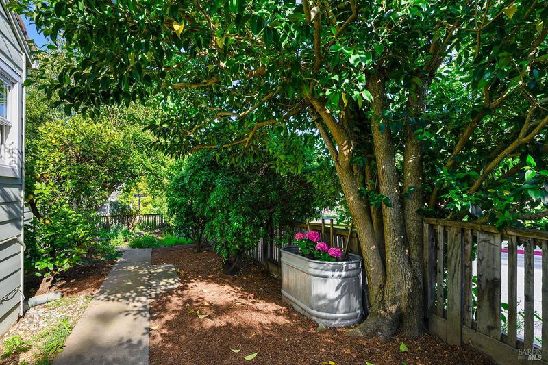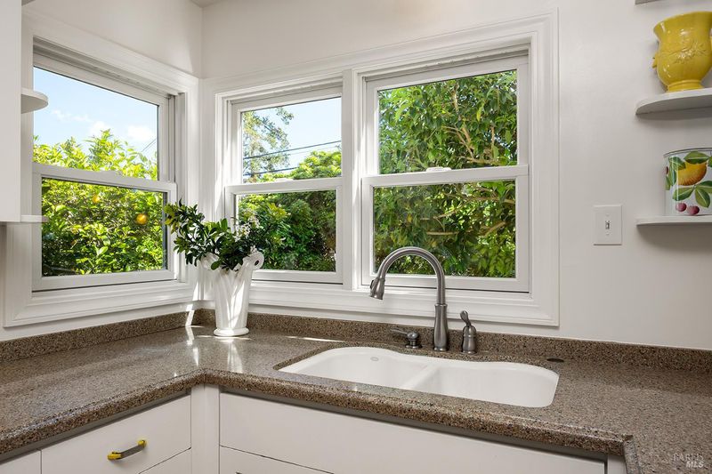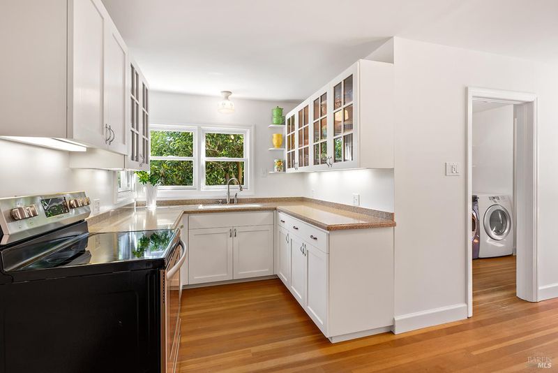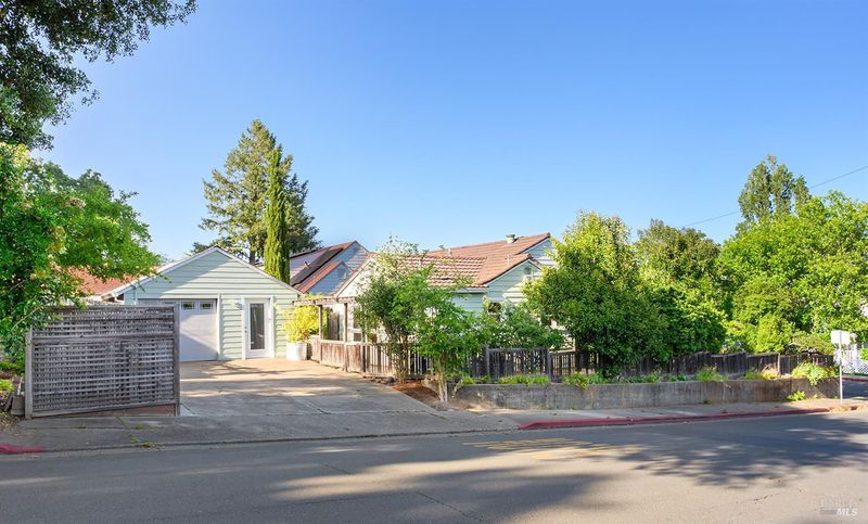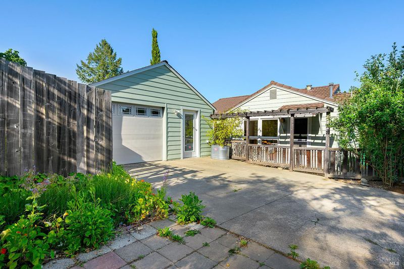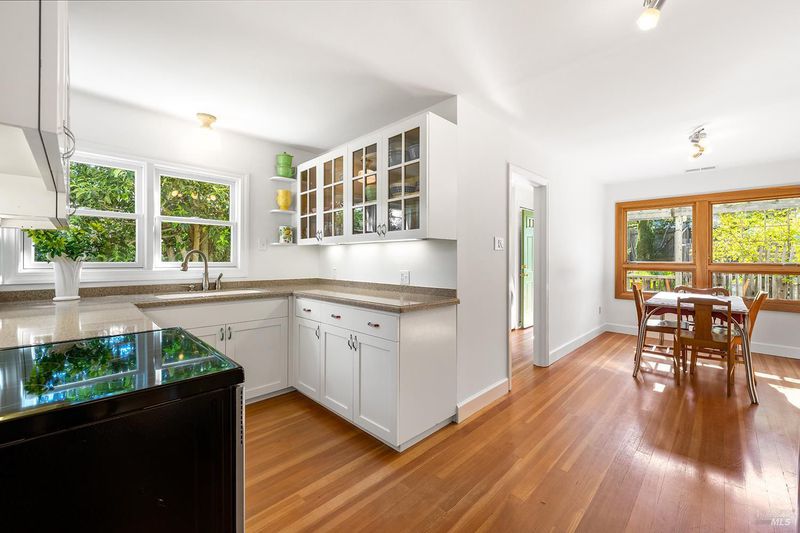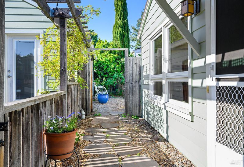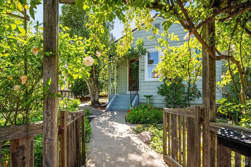 Irresistibly charming, this home expresses pure delight from the get go with an impeccable interior that lights up with fresh new paint, an abundance of crystal clear corner windows, picture windows, double windows, warm wood floors and notable improvements that weave seamlessly in to its enduring comfort. New air conditioning, on demand Hot water heater, New Refrigerator and Range. The kitchen has been remodeled, completely, with finishing elements that give nod to its heritage - Bakelite cabinet pulls, ceiling light fixtures, glass door upper cabinets. The landscaping is purposeful in it's rustic allure, random yet sculpted, it's a joy to sit among its color and character - Meyer lemons, Lime, Orange, Pomegranate and Concord grapes bring seasonal harvests. Indoor laundry room, metal roof on the main dwelling, new roof and door on the detached garage, decorative fencing and there's a chicken coop enclosure, so bring the hens! Sited with an elevated perspective, some distant views are captured. ADU potential. This home, for all reasons, is just profoundly right!!