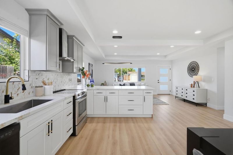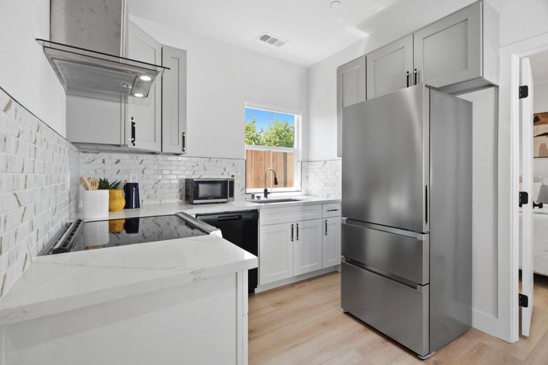 Welcome to 2512 Amethyst Dr in Santa Clara. This fully remodeled property offers a total of 5 bedrooms and 3 bathrooms across a beautifully updated main home and a detached newer construction ADU with its own separate address and electric meter, ideal for extended family or rental income. The main home features 3 bedrooms, 2 bathrooms, approx. 1,440 SqFt of living space on a 5,600 SqFt lot, with LVP flooring, tray ceilings, recessed lighting, and designer finishes throughout. The updated kitchen includes quartz countertops, subway backsplash, soft-close shaker cabinetry, and stainless steel appliances. The primary suite offers a walk-in closet and a remodeled bathroom with quartz surfaces and a custom-tiled shower. The detached ADU offers 2 bedrooms, 1 bathroom, approx. 600 SqFt, a full kitchen, and in-unit laundry. Additional highlights include a newer roof, double pane windows, Nest thermostat, owned solar, heat pump HVAC, and low Santa Clara utilities. Finished garage with epoxy flooring, EV outlet, and tankless water heater. Conveniently located near Bracher Park, Bowers Park, Costco, Nob Hill, Whole Foods, and major employers, including Apple, Google, Nvidia, and LinkedIn, with easy access to major highways.