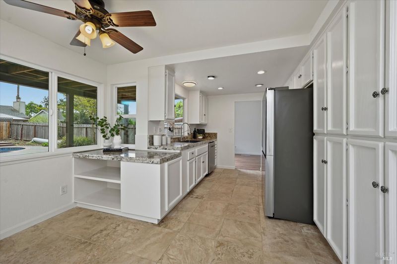 Welcome to this beautifully updated two-story home in Northwest Santa Rosa, offering 4 bedrooms, 3 full bathrooms, and just under 1,800 square feet of thoughtfully designed living space. Blending modern updates with everyday comfort, this home is move-in ready and designed to live well. Step inside to a light-filled interior featuring fresh interior paint throughout, a tile entry, and laminate flooring in the living and formal dining areas. The main level offers a seamless flow ideal for both daily living and entertaining. The updated kitchen features granite countertops, generous cabinetry, and opens directly to the family room, where a wood-burning fireplace and built-in workspace create a warm and functional gathering space. A standout feature of the home is the effortless indoor/outdoor connection where sliding glass doors from the living area open to a spacious deck, creating the perfect setting for outdoor dining, relaxing, or hosting. The main level also includes a bedroom and full bathroom, offering flexibility for guests, extended living, or a private home office. Upstairs, you'll find new carpet throughout the bedrooms, stairs, and hallway, along with well-proportioned secondary bedrooms. The primary suite offers a peaceful retreat with an updated bathroom and a private balcony overlooking the backyard and pool - an ideal spot to unwind at the end of the day. The backyard is designed for enjoyment, featuring a pool and multiple areas for entertaining, lounging, or creating your own outdoor oasis. Ideally located near Finley Community Park, Northwest Community Park, and Place to Play Community Park, you'll enjoy convenient access to trails, recreation, and open space. Shopping, dining, and commuter routes are all within easy reach, making this location as practical as it is desirable. This home offers the perfect balance of comfort, updates, and lifestyle ready for its next chapter!