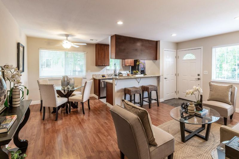 Elegant living awaits at 2323 Saidel Drive, Unit 4, This charming 2-bedroom, 1-bathroom condo spans 798 square feet, nestled among serene trees. The open layout merges living, dining, and kitchen spaces, ideal for both comfort and entertaining. Enjoy modern elegance with updated cabinets and fixtures throughout, complemented by the warmth of engineered wood flooring. The home features air conditioning and the convenience of on-site laundry, with a pet-friendly atmosphere welcoming all family members. Additionally, there's potential to convert the closet by the bathroom into a dedicated inside laundry area. Perched on the second floor, this home has lots of natural light and offers tranquil views of the surrounding greenery. Meticulously maintained grounds and additional amenities enhance the refined living experience. Convenient access to Freeway 85, located near Los Gatos, Campbell, shopping and transportation options! Location Location Location , Nested adjacent to Los Gatos, Campbell, and Cambrian. updated 2 bedroom one bathroom, one story upstairs unit, Balcony with green view of surrounding, close to Good samaritan Hospital, Shopping centers, whole food, Trader Joes .., Easy Access to freeway and public transportation, Campbell union School district,